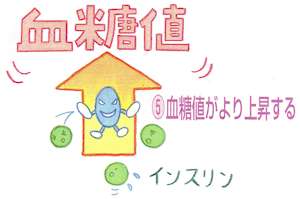 ⑤血糖値がより上昇する