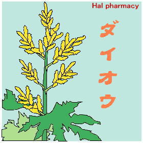 【用途】…大腸性瀉下、消炎性健胃薬として、漢方では実証性体質の結毒を取除き、通利を促し、胸満、宿食、便秘による腹痛、化膿性腫脹を治す要薬である。それ故、常習性便秘、黄疸、尿利異常、せんご、潮熱、胸腹痛、腫膿、等に応用される。これらの薬効成分はアントラキノン配糖体とタンニン性成分の複合作用によるものであろうが、用量と服用者の体質及び症状条件によってその著しい差異があるから、服用に際しては充分な注意が必要である。